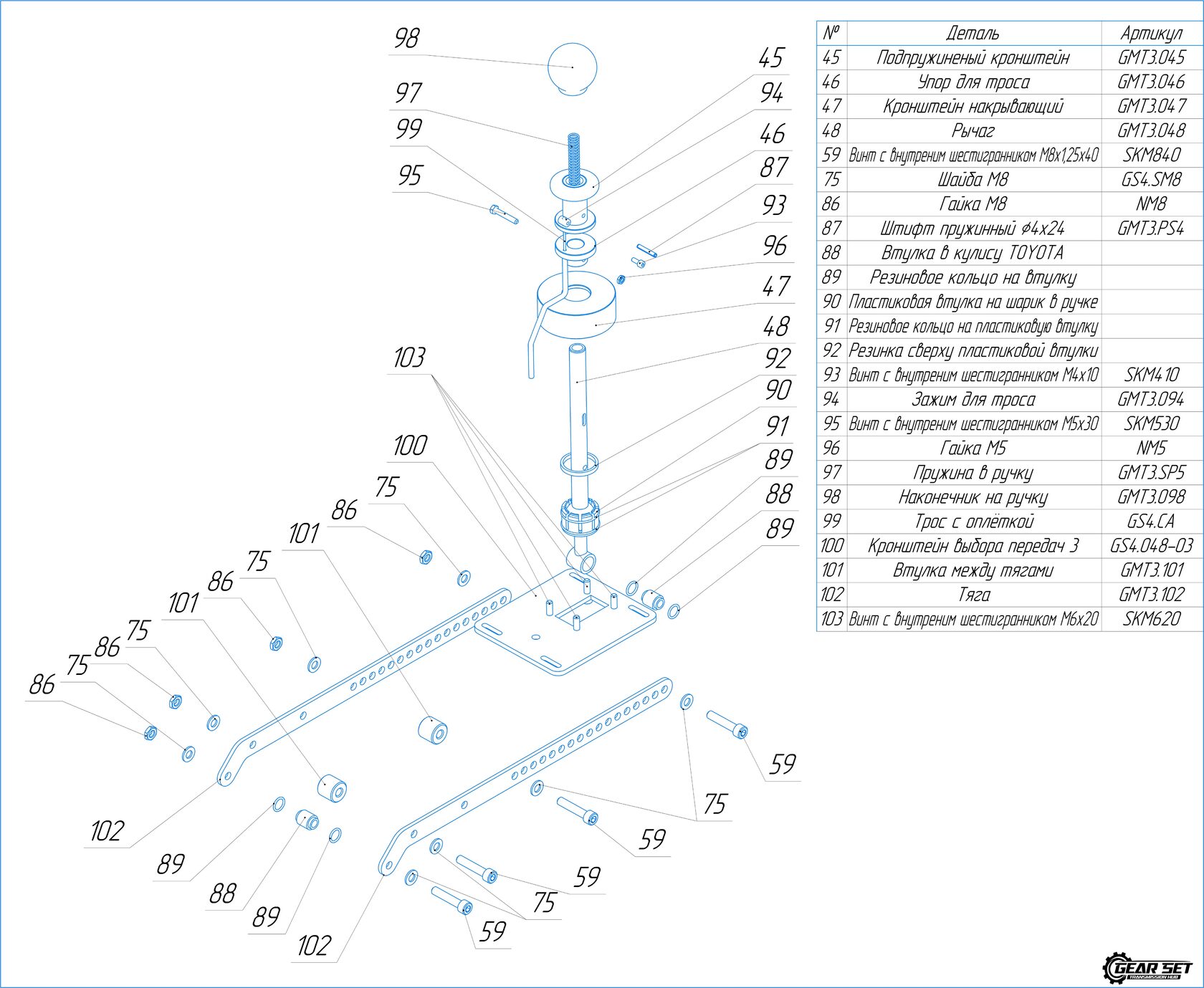 Помимо прочности, КПП является самой легкой, вес внутренних деталей, участвующих во вращении с подшипниками - 12 кг, для сравнения, это на 5 кг меньше чем, даже облегченные иностранные аналоги. В базовой комплектации - переходная пластина под автоматный колокол на JZ, с креплениями под выжимной подшипник Тилтон.