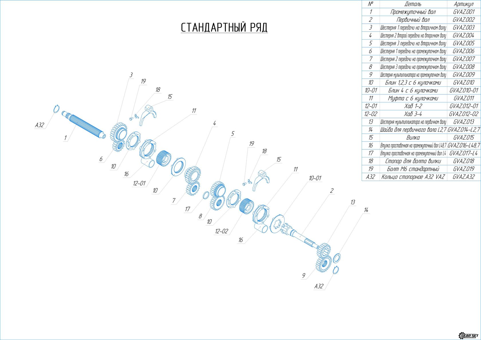 Данный комплект предназначен для 4-5 ст. КПП ВАЗ Классика и может быть установлен в стандартный корпус без доработок.